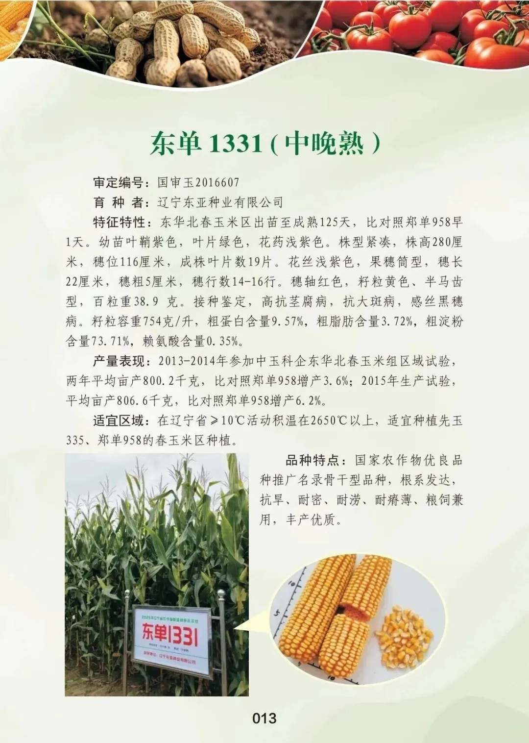 該品種連續獲得農業農村部多項認可:2022年被列為糧油生產主導品種,2023年入選國家農作物優良品種推廣目錄中的成長型玉米品種,2024年再度獲評農業主導玉米品種,2025年進一步提升為國家農作物(玉米)骨干型品種。同時,自2023年以來,東單1331已連續三年榮獲遼寧省農作物優良品種稱號。